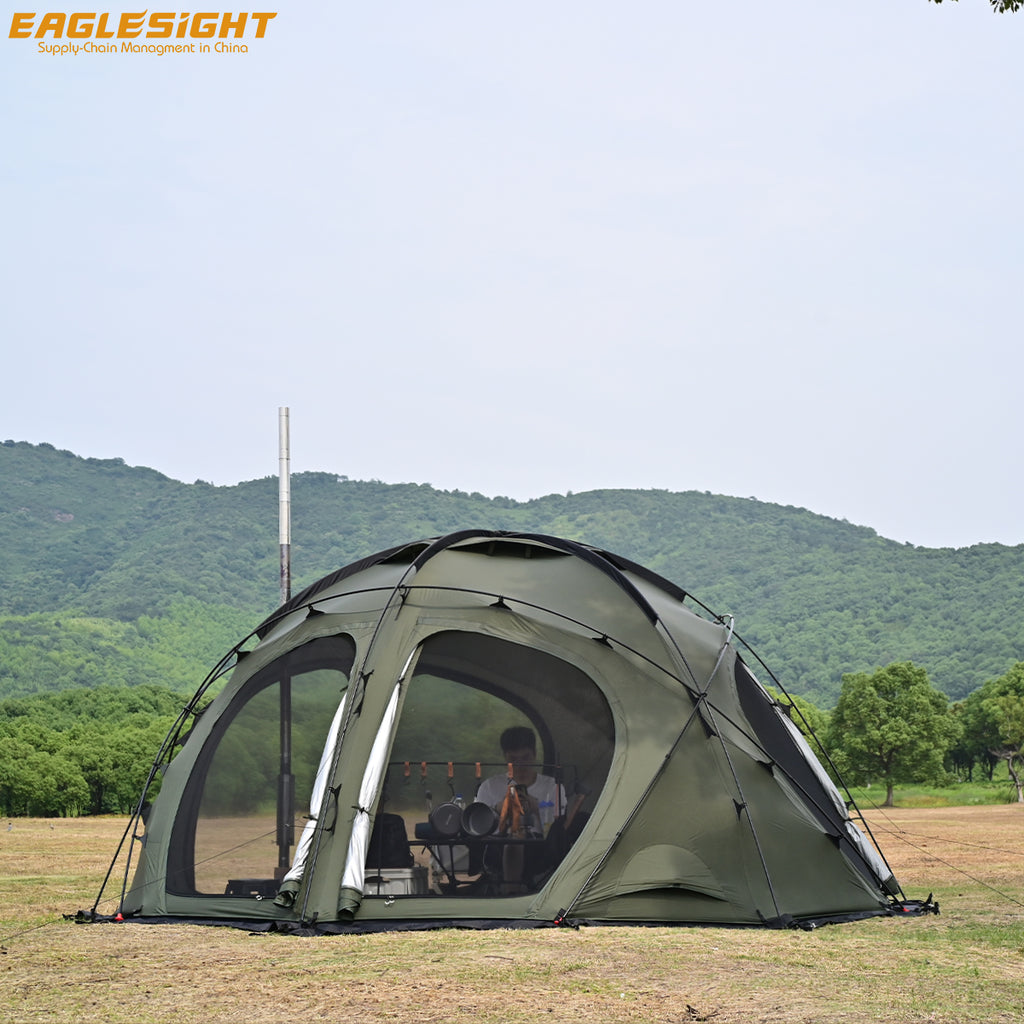 Spacious Waterproof Wind-Resist Free-standing 8-person Geodesic Tent Semisphere Tent with Chinmeny Jacket Tent OEM ODM