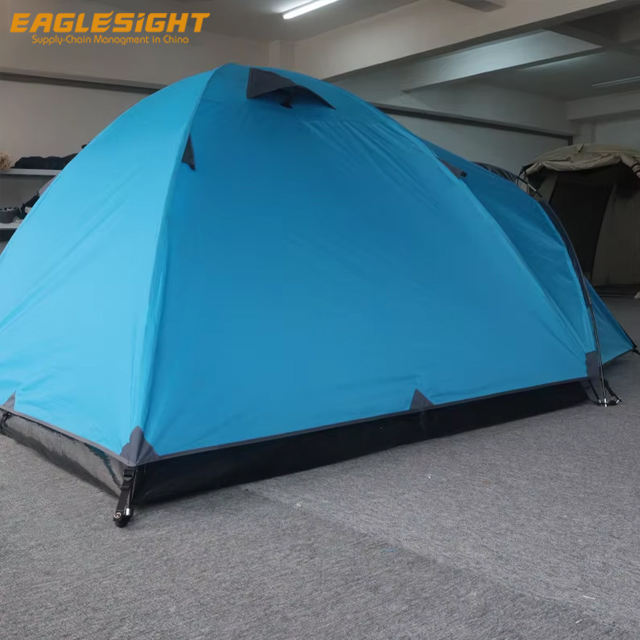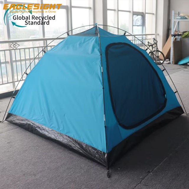 Factory OEM Double-Layer Outdoor Camping Tent 3-4 Person Fiberglass Pole Waterproof Breathable Polyester Customizable