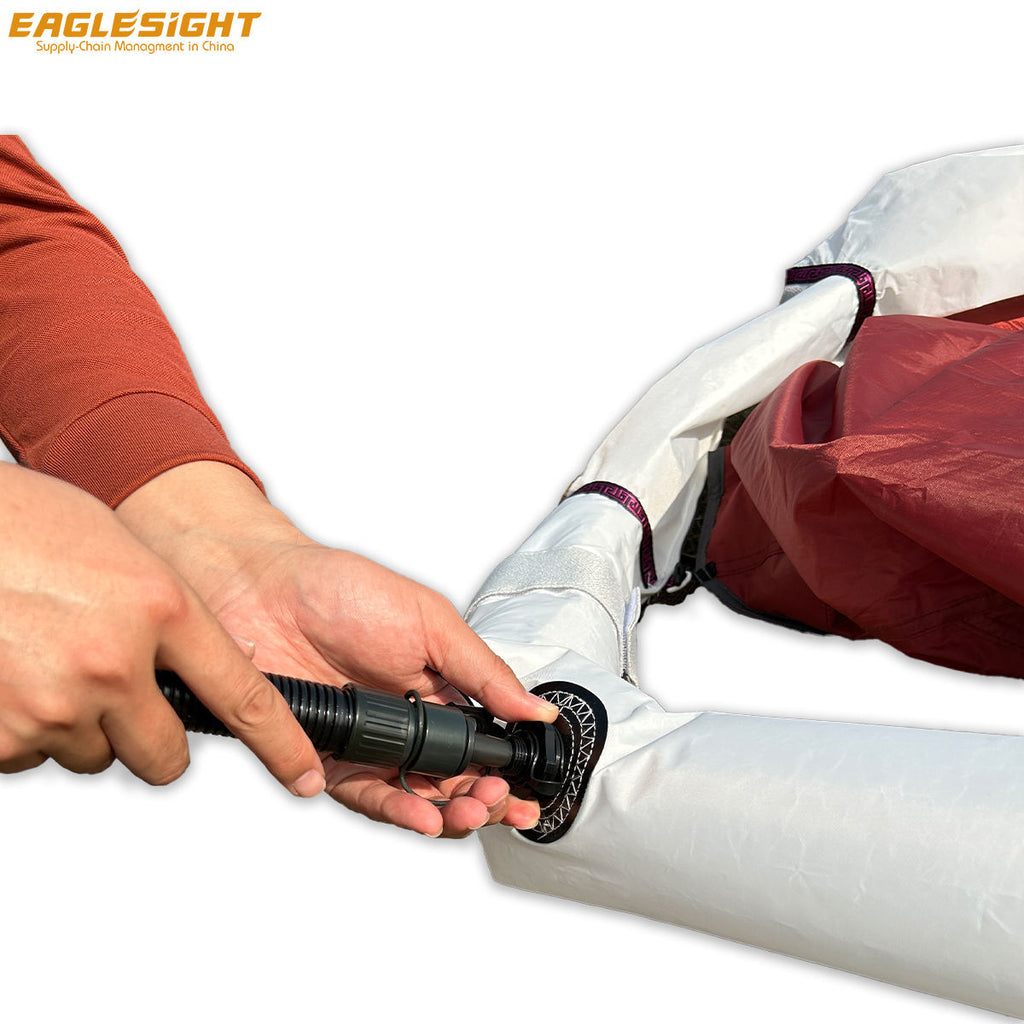 The valve is a double-layer quick inflation-deflation valve. You can inflate the frame with almost all kinds of air pump to the first layer. And when you want to deflate it, you simply open the second layer of the valve to release the air.